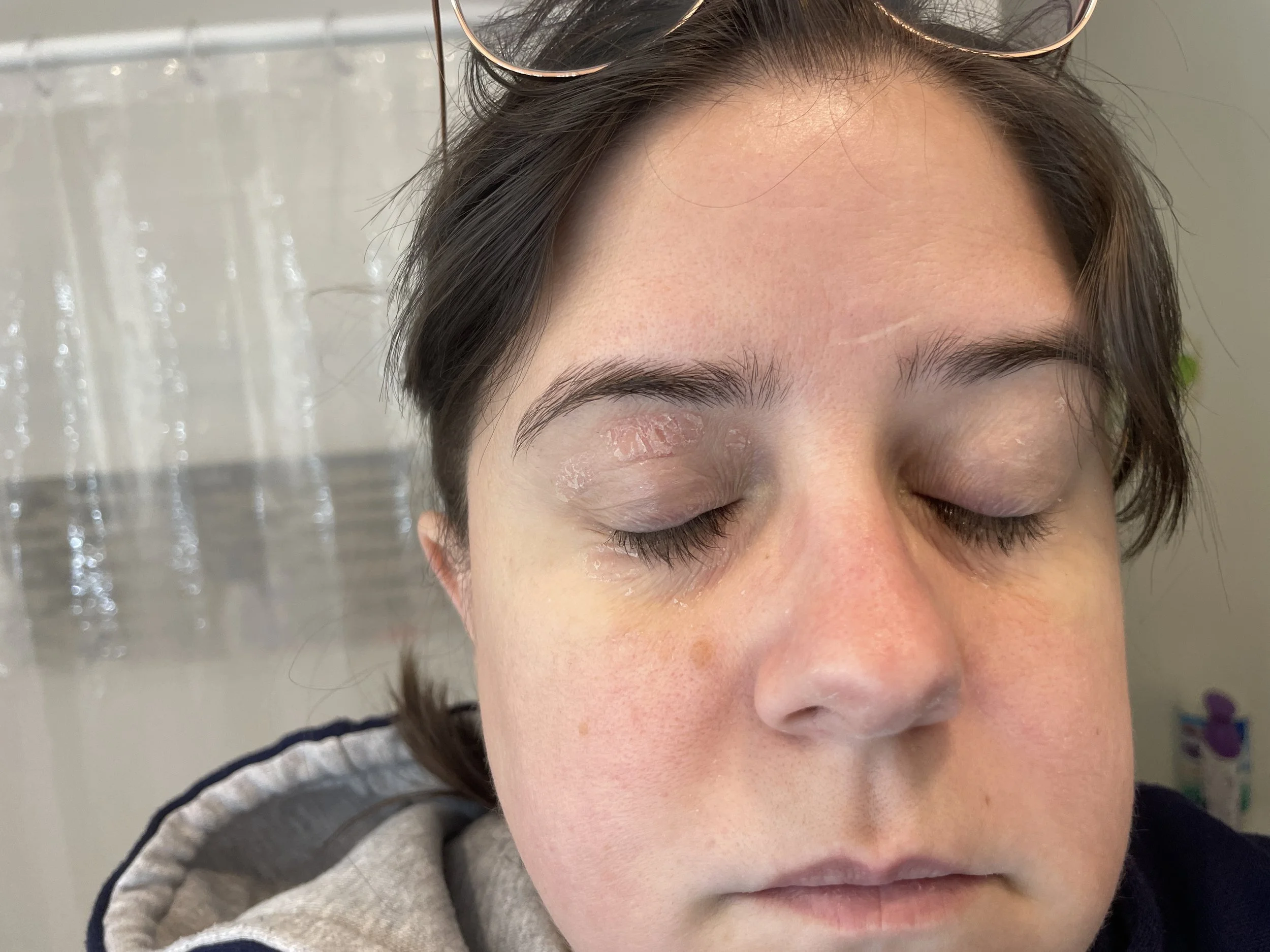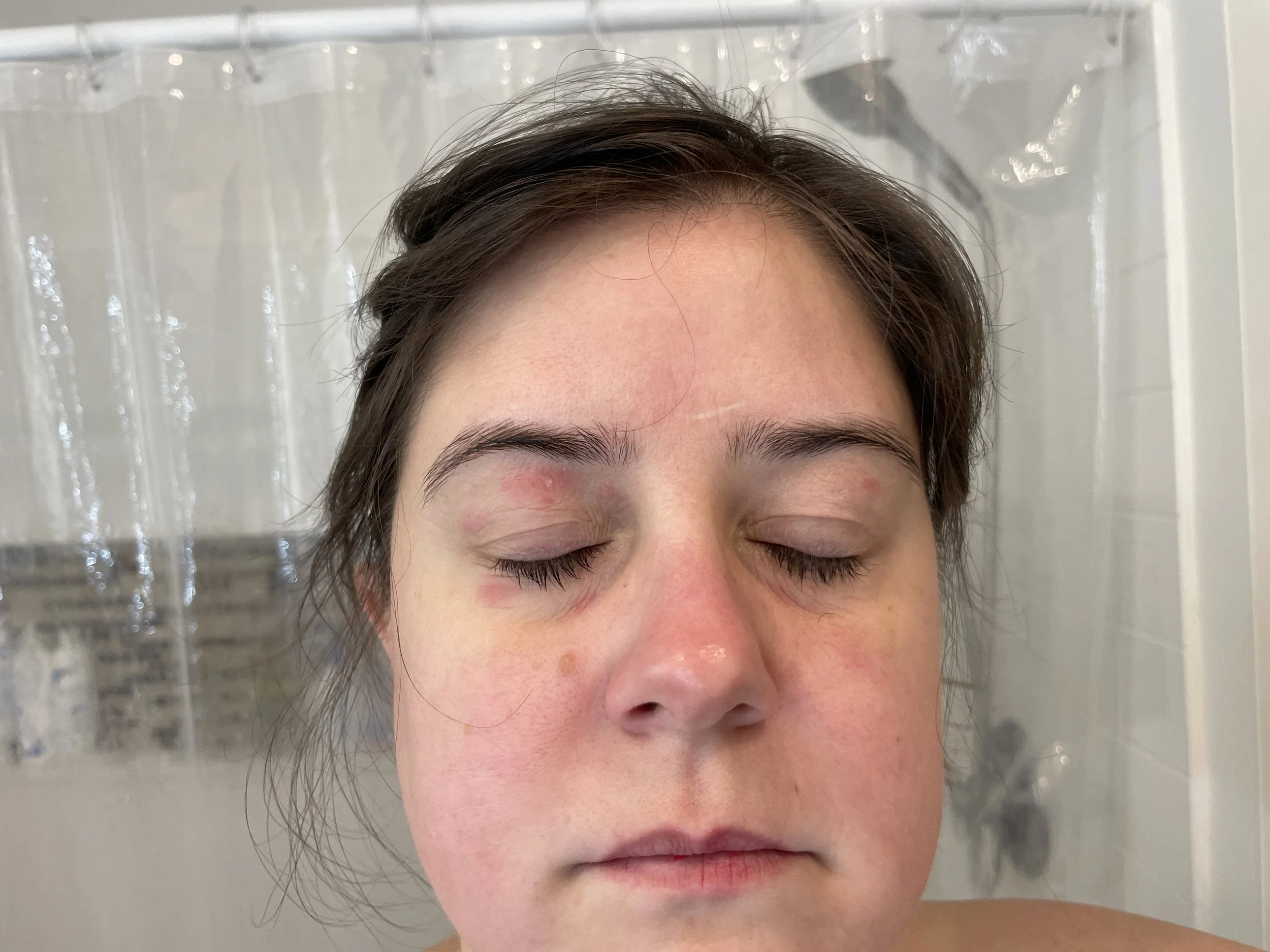 April 17, 2025: spreading to my cheek, chin, and getting worse around left eye.